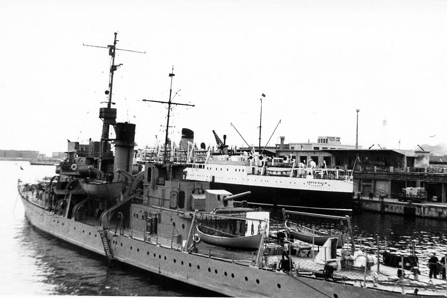 206k | At the state pier, Cape Cod Canal, Massachusetts, circa the late 1940s, while she was the Massachusetts Maritime School Ship Courtesy of Donald M. McPherson, Corte Madera, California, 1972 Naval History and Heritage Command photo NH 77120 |