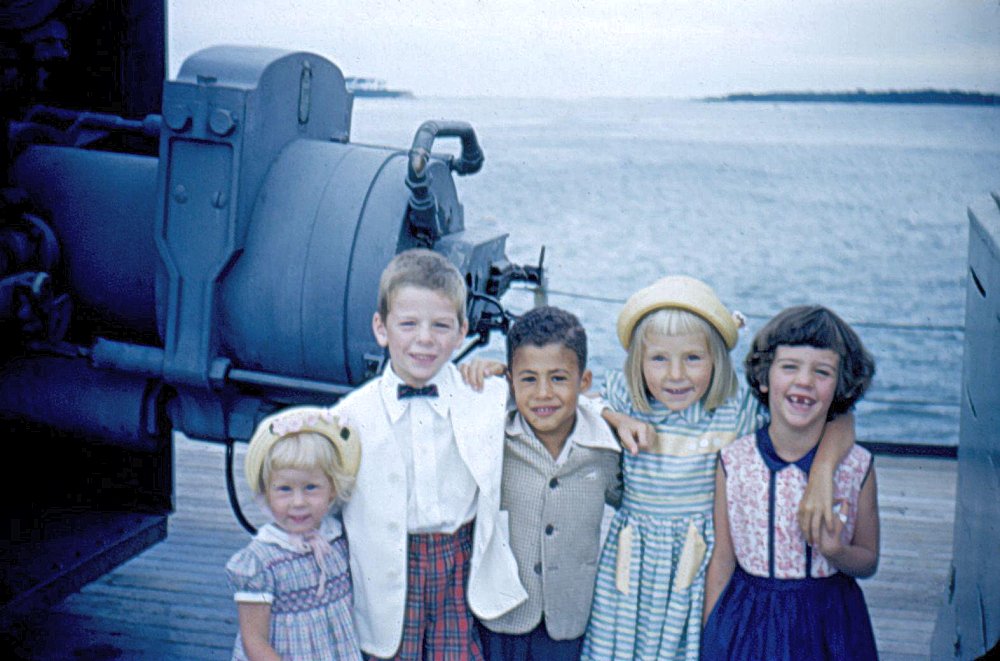 87k | c. fall 1955 East Boston Shipyard Just before deploying for three months on a training cruise to the Mediterranean in January 1956 |