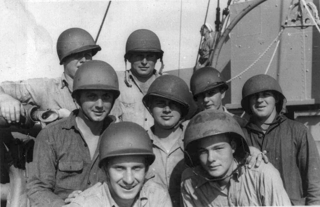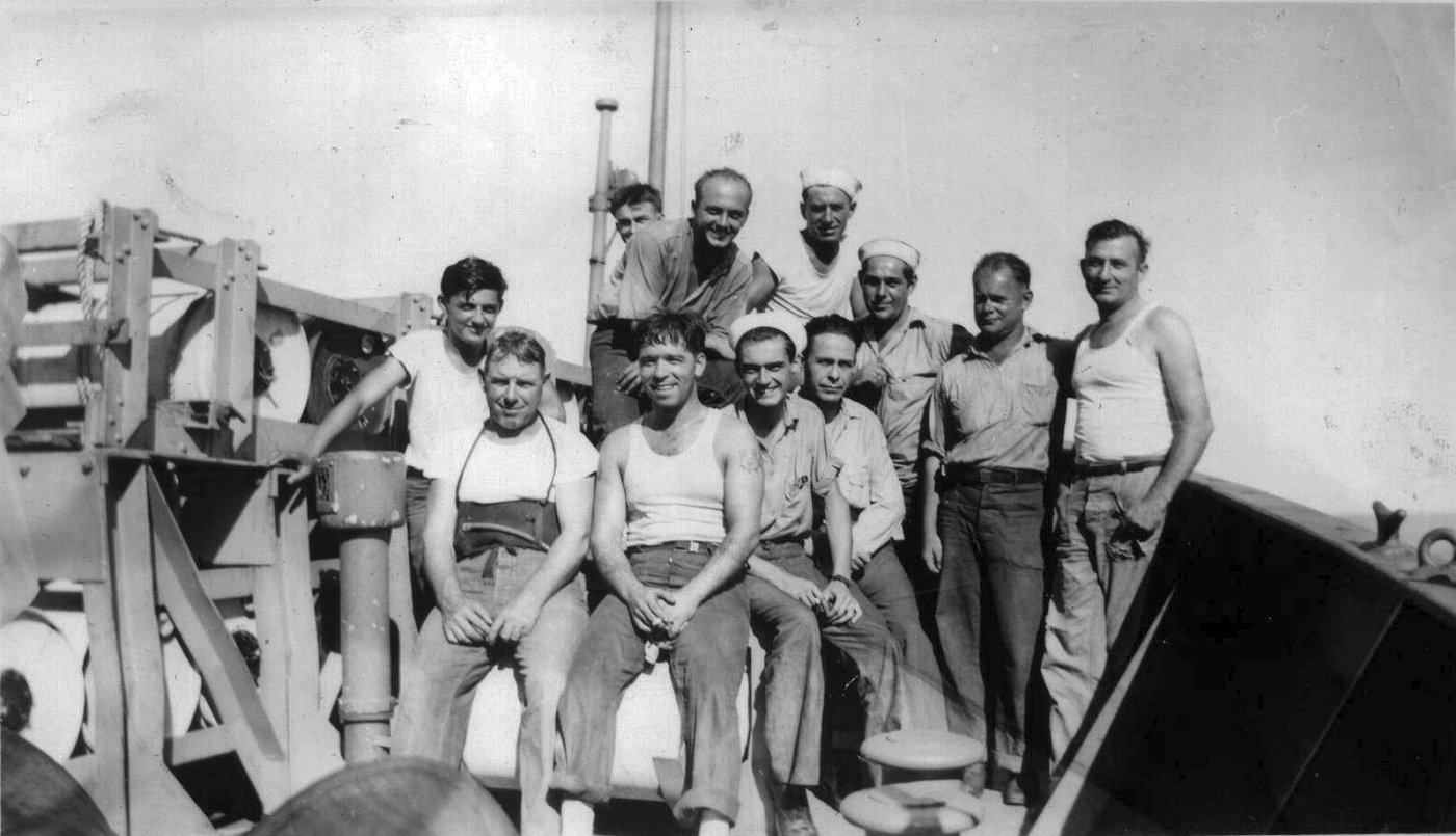 2. c. October 1943. Crew photo. Commanding Officer, LT E. C. Long, front row center. Robert Rush center group, third from right, second row.