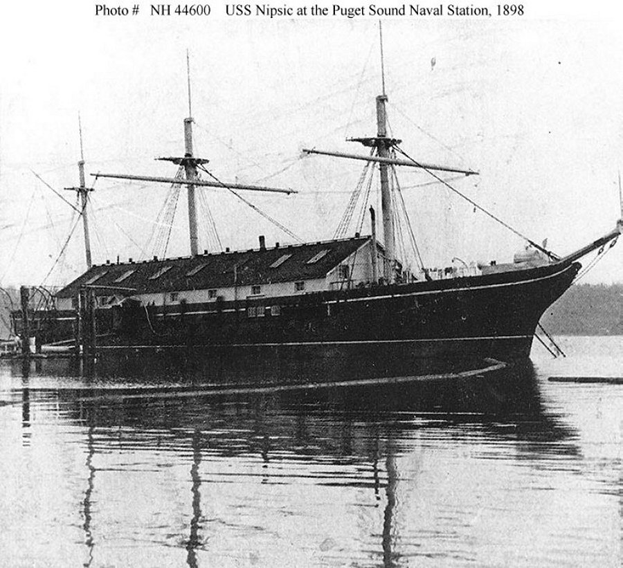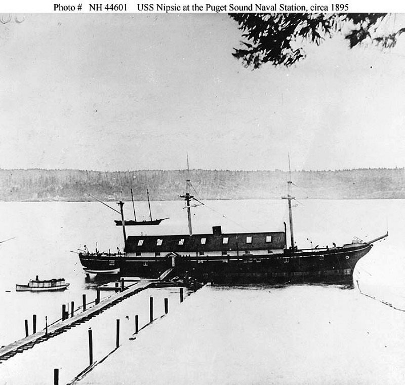 During the rest of 1889, Nipsic underwent repairs at Honolulu. She operated in Hawaiian waters until September 1890 and was decommissioned at the Mare Island Navy Yard, California, in early October of that year. In 1892 she was taken to the Puget Sound Naval Station, at Bremerton, Washington, for use as a barracks and prison ship. With a large roof built over her hull amidships, she served in this stationary role for some two decades. USS Nipsic was sold in February 1913. Her new civilian owners subsequently converted her to a barge.