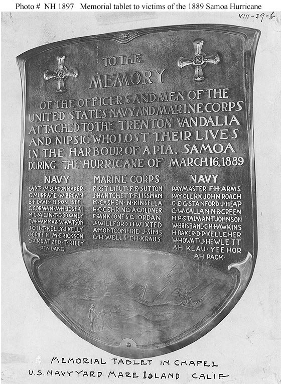 Addition information taken from the site "The Patriot Files." This explains why the ships were on duty station in Samoa at the time of the Hurricane [that the] DANFS omitted.
