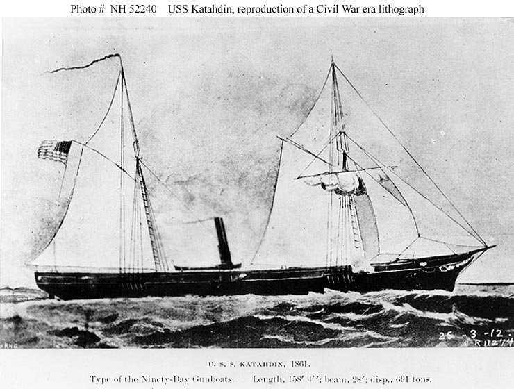 The first Katahdin was launched by Larrabee & Allen, Bath, Maine, 12 October 1861; and commissioned at Boston Navy Yard 17 February 1862, Lt. George Henry Preble in command.