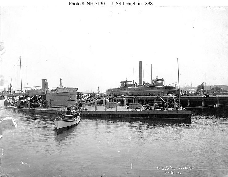 The Monitor Lehigh, most likely photographed at the Boston Navy Yard in the summer of 1898, while she was in commission during the war with Spain. The Governor Russell is on the opposite side of the pier Naval History and Heritage Command photo NH 51301