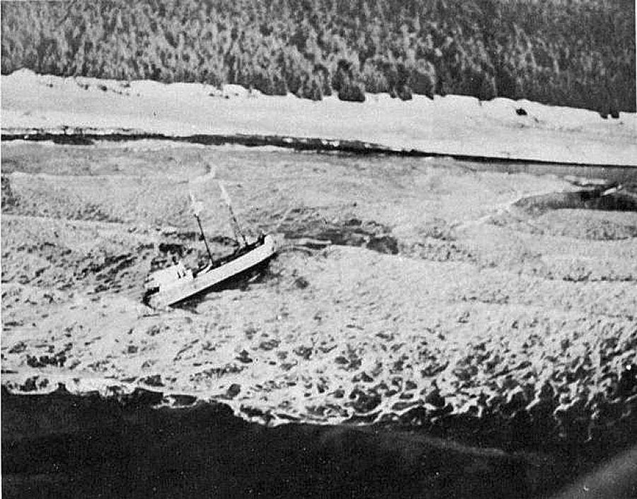 130k | c. 1938 Aground at Cape Fairweather, AK Courtesy of Puget Sound Maritime Historical Society |