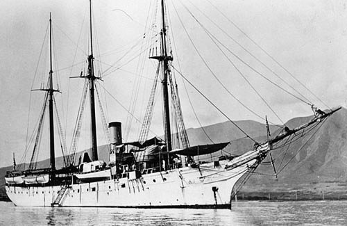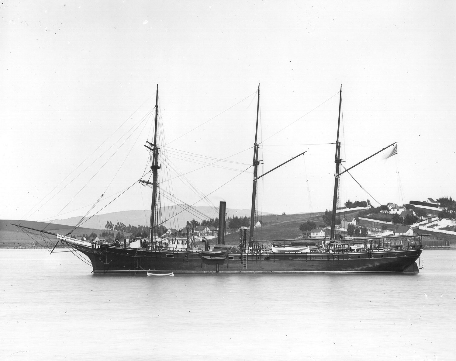 227k | Anchored off Mare Island, California, about 1890 Photograph from the William H. Topley Collection from the files of the Vallejo Naval and Historical Museum |