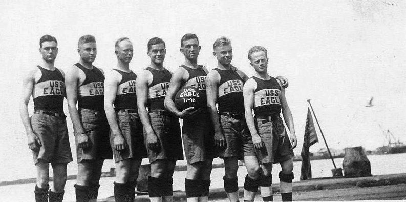 c. 1918 Eagle's basketball team. In the center is ENS Eddy Earle Ellwood, USNRF |