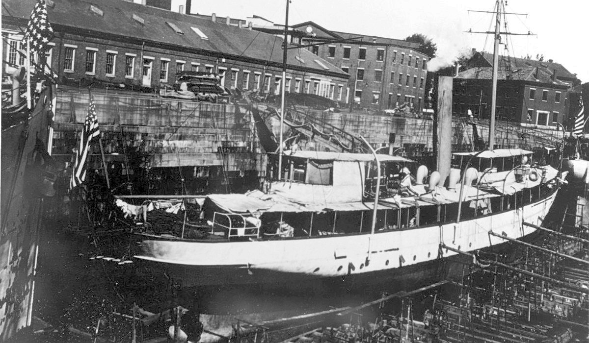 In drydock at the Portsmouth Navy Yard New Hampshire in September, 1916 astern of Paducah. Gunboat No. 18 Courtesy of John G. Krieger, 1967 Naval History and Heritage Command photo NH 43475 |