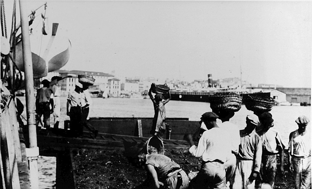 28 November 1916 San Juan, Puerto Rico Photographer comments that these workers were mostly women Photographed by Mr. John G. Krieger, who was a machinist's mate on the USS Eagle, and donated by him in 1967 Courtesy of John G. Krieger, USN Naval History and Heritage Command photo NH 64950 |