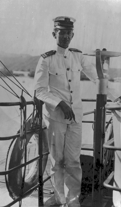Lieutenant Henry Kent Hewitt, USN. Commanding Officer of the USS Eagle in 1916-1917. This photograph shows him on the bridge of the Eagle sometime during this period Photographed by Mr. John G. Krieger, who was a machinist's mate on the USS Eagle, and donated by him in 1967 Courtesy of John G. Krieger, USN Naval History and Heritage Command photo NH 64952 |