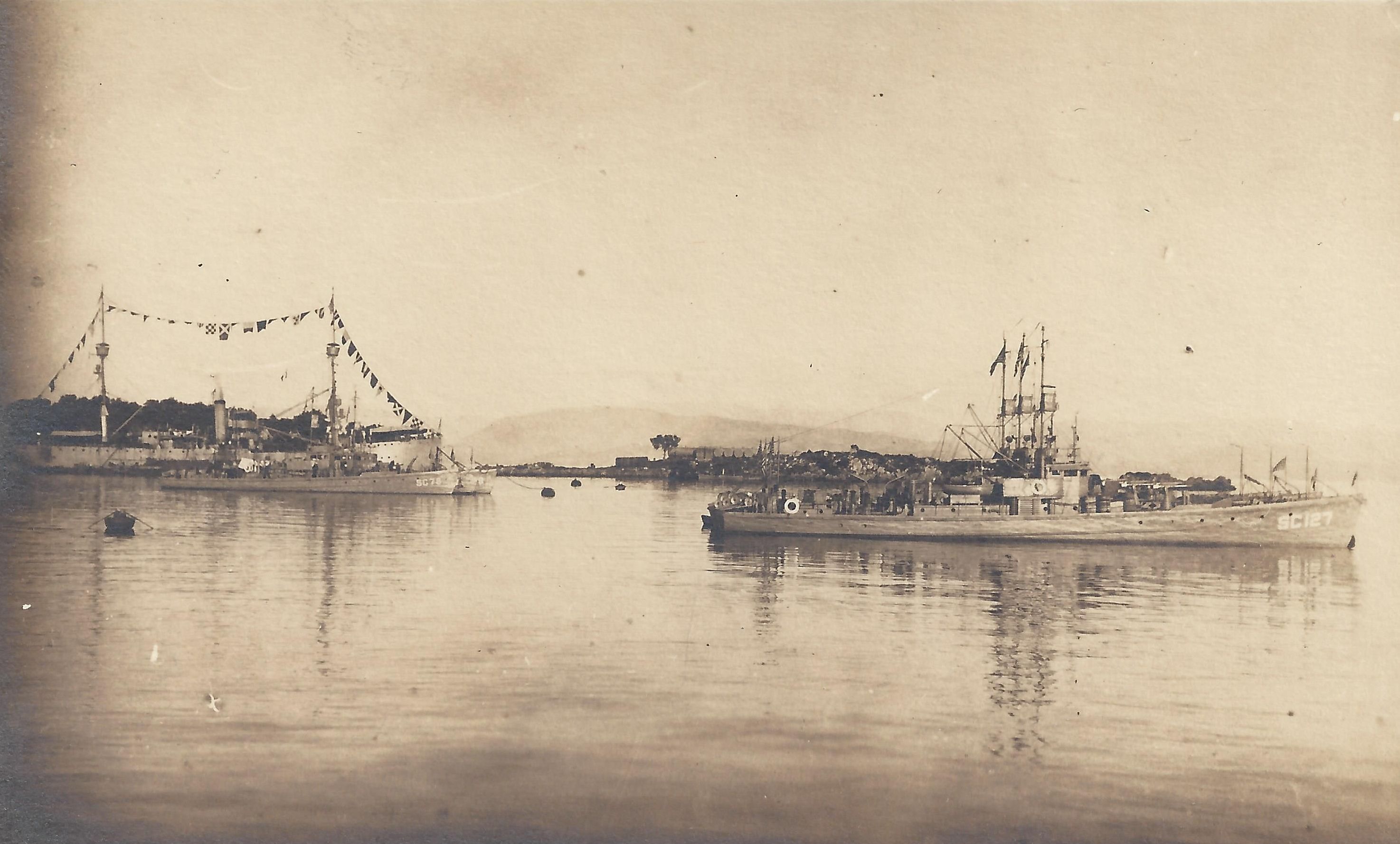 422k | RPPC of sub chasers moored at Villefranche, France, probably on their way home from Corfu, 1919. L-R: SC-127, SC-255, SC-256 and SC-79. | Jay Milewski | |
