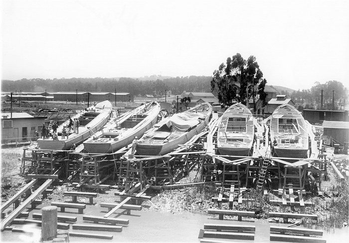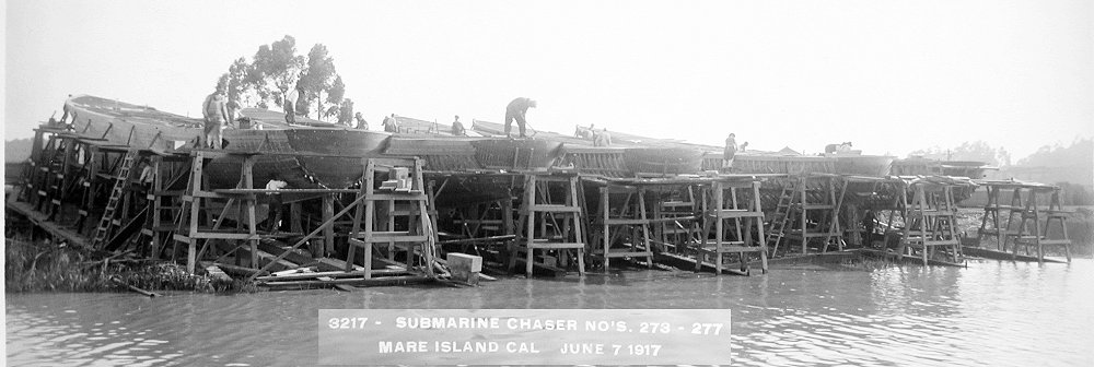 SC-273 - 277 102k Sub chasers hull number SC 273 - 277 on the building ways at Mare Island Navy Yard in 1917. The shipyard built 15 sub chasers during WWI Darryl L. Baker