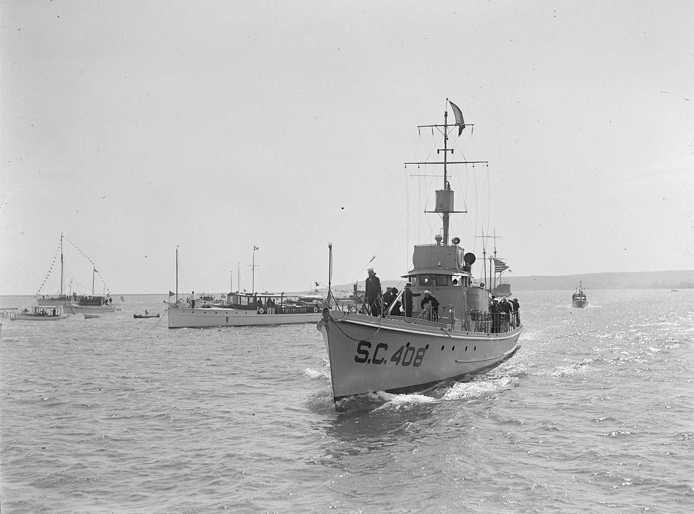 c. 1921 Plymouth Harbor, MA President Warren Harding being ferried to Plymouth from USS Mayflower [PY 1] on SC-408 Courtesy of Boston Public Library, Leslie Jones collection |