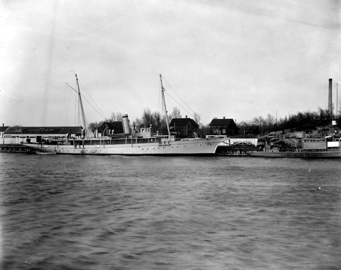 199k | c. 1920s Michigan City, Indiana Moored forward of USS Hawk (PY 2) while serving as a naval reserve training vessel Naval History and Heritage Command photo NH 54954 |