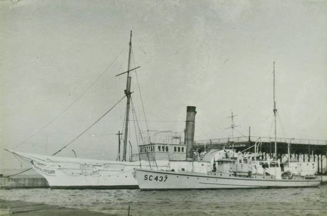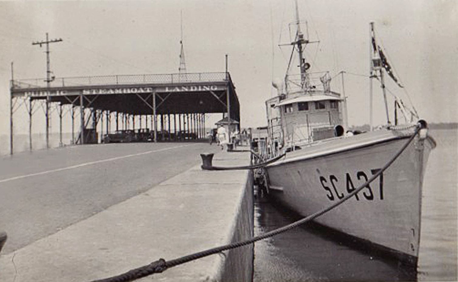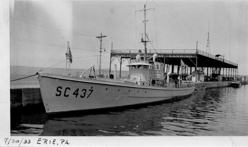 68k | Another view moored at Public Steamboat Landing, Erie, PA, circa 1933. Possibly a 75' YP moored ahead of SC-437. | Tim McLaughlin Flagship Niagara League |