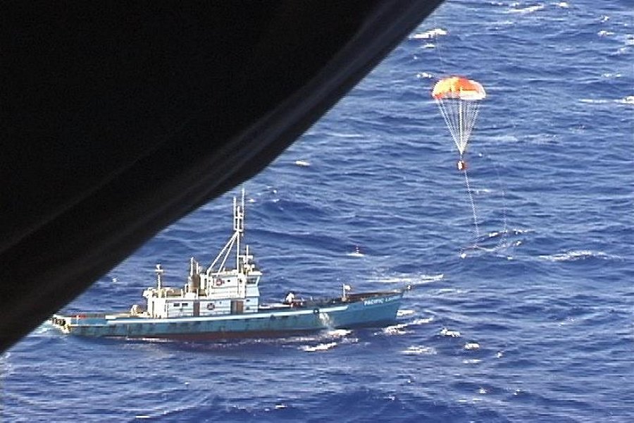 A Coast Guard C-130 dropping a dewatering pump to Pacific Laurel U.S. Coast Guard video from http://www.splinterfleetorg/sfafloat.php courtesy of Theodore R. Treadwell |