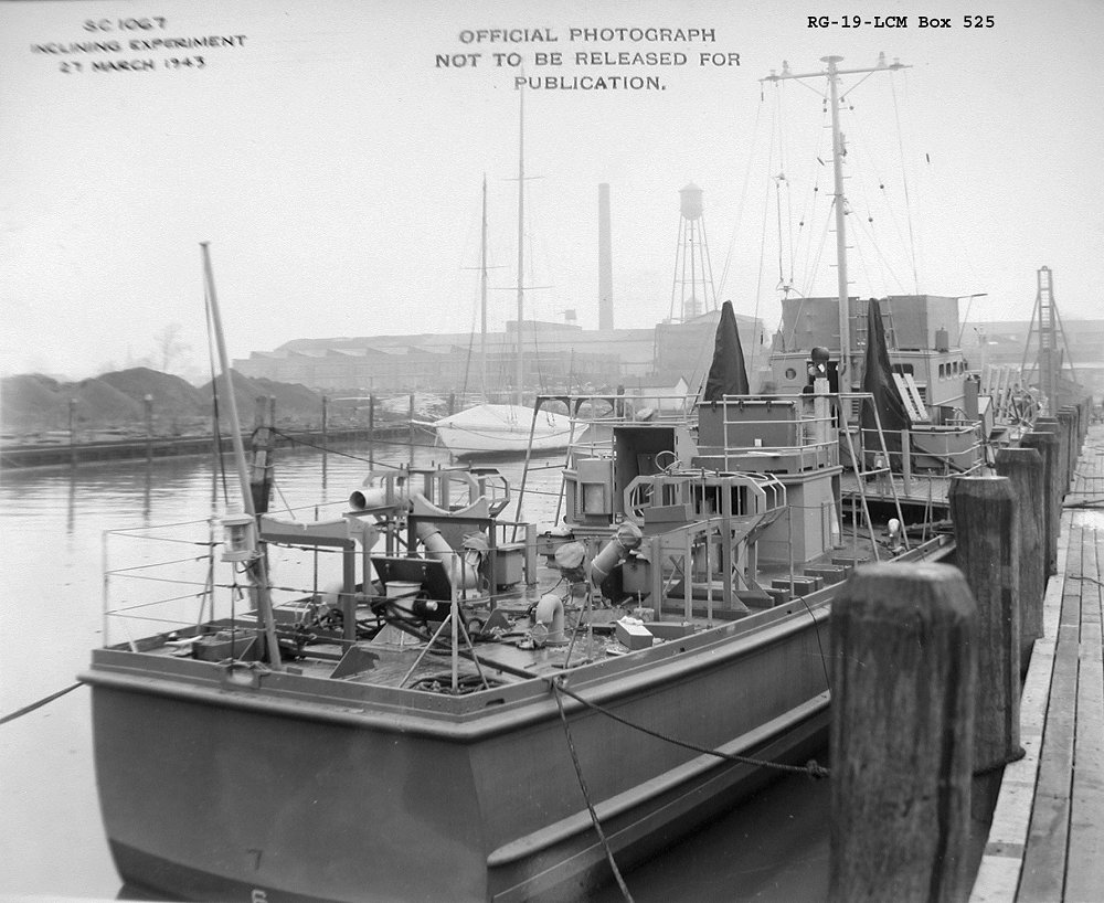 123k | 27 March 1943 Inclining experiment. National Archives photos |