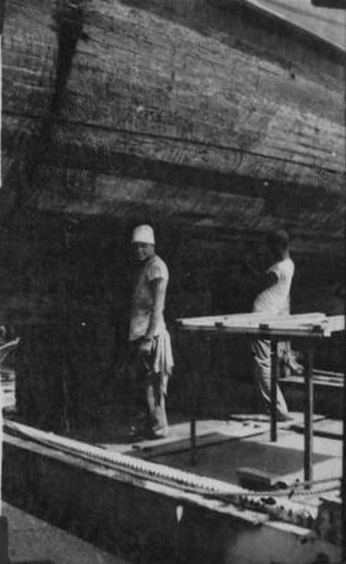 27. GM 2/c Jim Garrison and RdM 2/c Dougherty scrapping the hull
