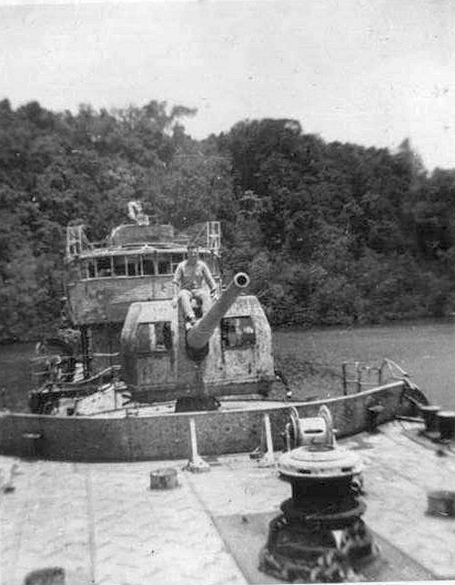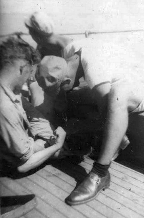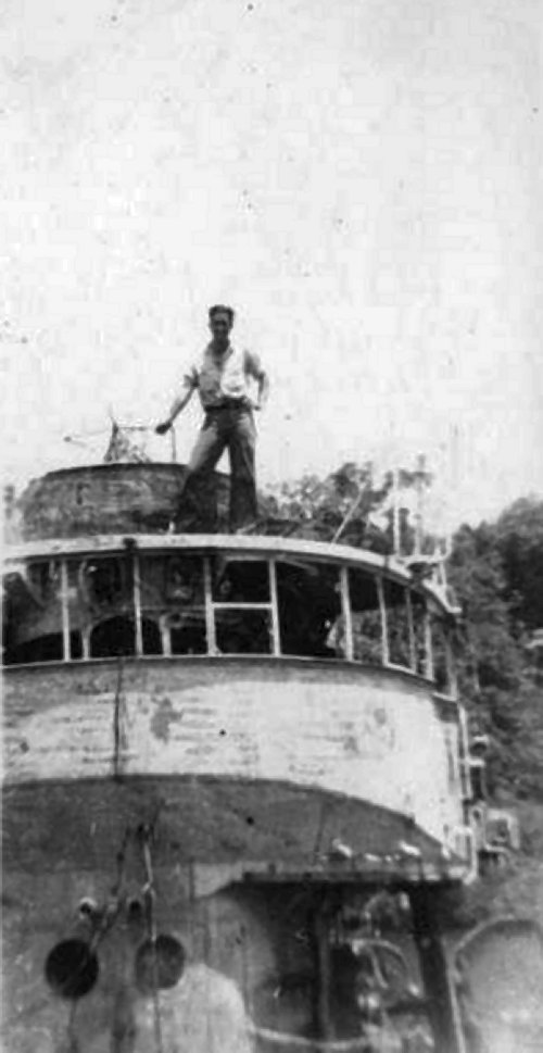 18. Dougherty RdM 2/c on Japanese Destroyer at Tulagi