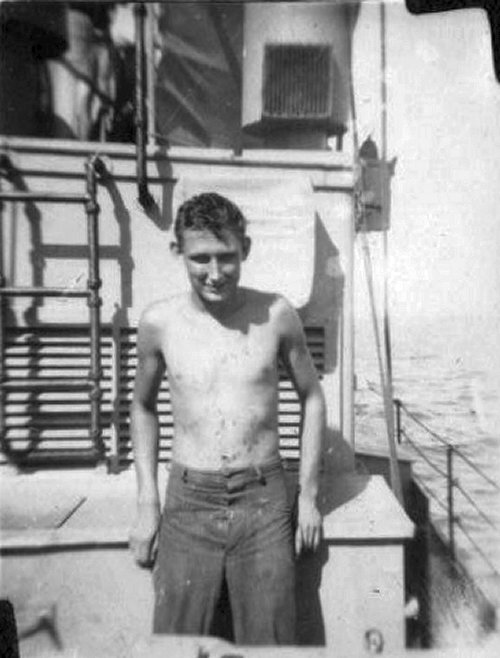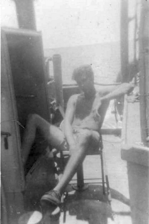 37. Hanshaw sitting out on Engineroom watch on the way to Frisco