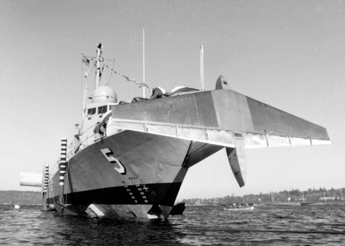 403k | c. 1985 Making a foil-borne, high speed turn during Operation UNITAS XXVI U.S. Navy photo DN-ST-85-08191 from National Museum of the U.S. Navy |