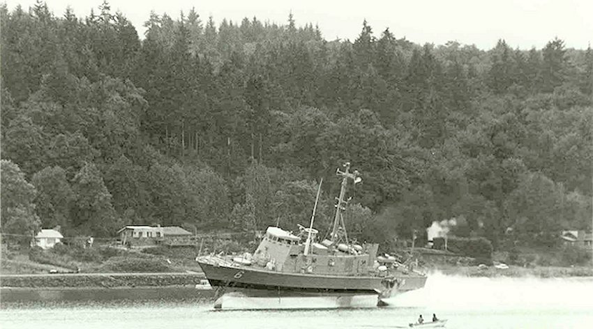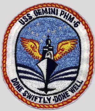 398k | 13 June 1993 Vessels of Patrol Combatant Missile Hydrofoil Squadron 2 travel in formation en route to Naval Amphibious Base, Little Creek, Va. for decommissioning. The hydrofoils include: the USS Pegasus (PHM 1), USS Hercules (PHM-2), USS Taurus (PHM-3), USS Aquila (PHM-4), USS Aries (PHM-5) and Gemini U.S. Navy photo DN-SC-93-05730 from National Museum of the U.S. Navy |