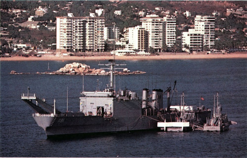 166k | Racine (LST 1191), Gemini and Hercules (PHM 2) at Acapulco, Mexico U.S. Navy photo from the October 1983 edition of All Hands magazine |