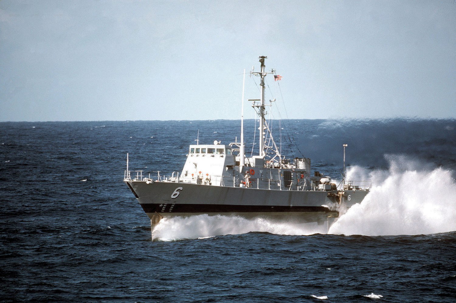 334k | 13 June 1993 All six vessels of Patrol Combatant Missile Hydrofoil Squadron TWO travel in formation en route to Naval Amphibious Base, Little Creek, VA for decommissioning. The formation includes the USS Pegasus (PHM 1), USS Hercules (PHM 2), USS Taurus (PHM 3), USS Aquila (PHM 4), USS Aries (PHM 5) and Gemini U.S. Navy photo DN-ST-93-05725 by PH2 Douglas F. Mooney |
