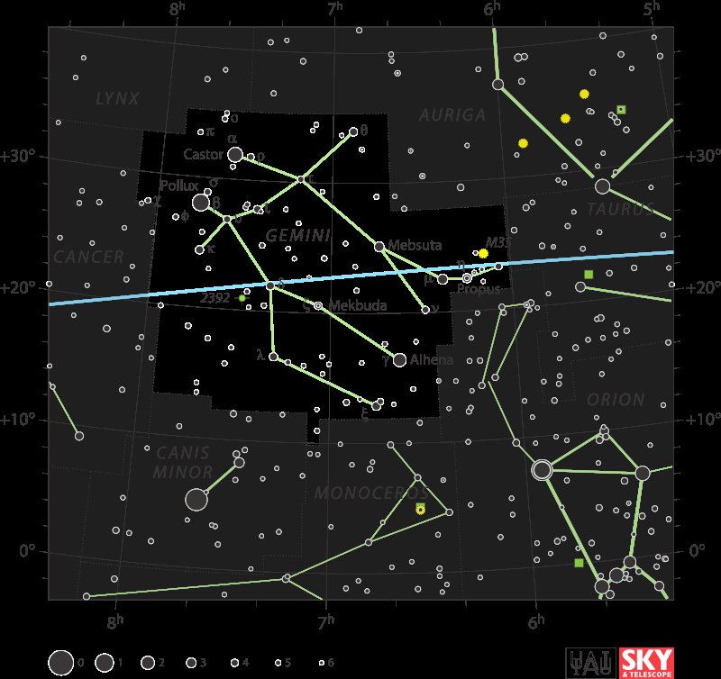 96k | Gemini is one of the constellations of the zodiac and is located in the northern celestial hemisphere. It was one of the 48 constellations described by the 2nd century AD astronomer Ptolemy, and it remains one of the 88 modern constellations today. Its name is Latin for twins, and it is associated with the twins Castor and Pollux in Greek mythology |