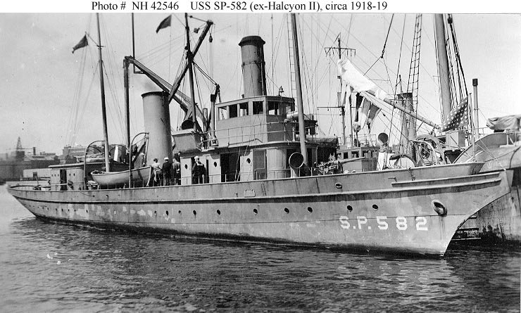 Photographed in icy water during the winter of 1917-18, probably at Boston, Massachusetts. When this view was taken, she may still have been USS Halcyon II (SP-582) as her name was not changed to SP-582 until early 1918 U.S. Navy photo NH 101820 |