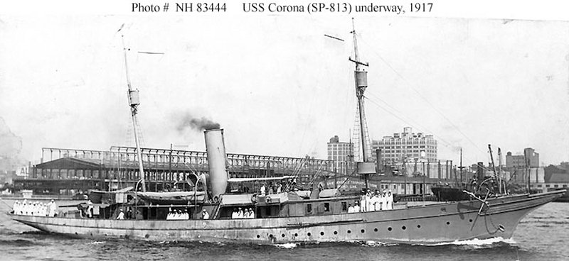 Corona (No 813) was built in 1905 by Hawthorne & Co., Leith, Scotland; purchased by the Navy 10 June 1917; commissioned at New York 20 July 1917, Lieutenant L. M. Stevens in command, and reported to Patrol Force, Atlantic Fleet.