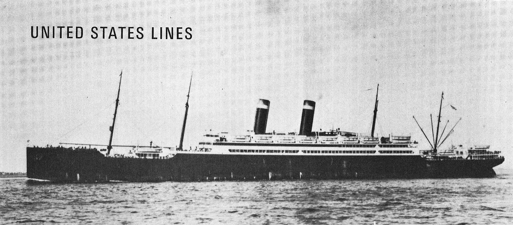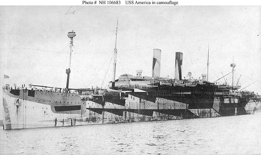 Original photo: Photographed circa 1919. U.S. Navy photo NH 78268 Replacement photo: USAT America photographed during the brief period in 1919-1920 during which she was operated by the Army after two years of World War I service in the Navy. Her appearance was probably similar to this during her service as an Army barracks ship in Newfoundland in 1941 Naval History and Heritage Command photo NH 78268 |