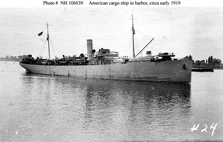 Dictionary of American Naval Fighting Ships: El Occidente, a transport, was built in 1910 by Newport News Shipbuilding and Dry Dock Co., Newport News, VA.; transferred to the Navy from the Shipping Board 27 August 1918; and commissioned 27 August 1918, Lieutenant Commander E. [Ernest] S. Campbell, USNRF, in command.After conversion to an animal transport, El Occidente sailed to Norfolk to load cargo which included 585 horses and mules, sailing for France 17 September 1918. She offloaded her cargo at St. Nazaire and Verdon, and returned to Norfolk 1 November, to load for a second voyage, carrying 1,467 tons of cargo and 800 animals to Verdon between 17 November and 19 December.