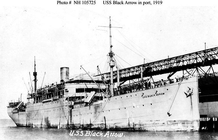 As a side note, significant to those interested in tracking the numbers assigned to ships by the U.S. Navy, this ship (then named Black Hawk) was inspected for possible Navy service by the Fifth Naval District about mid-1917 and given the registry ID-1534. However, the record of this action was apparently misplaced, and the ship (by now named Black Arrow) was given the new ID-3913 at about the time she entered Naval service. On 3 April 1922, nearly three years after she had been returned to the Shipping Board, the error was corrected and her number changed back to 1534. This reflects the Navy's contemporary effort to maintain a registry of civilian ships for possible acquisition in the event of another national emergency.
