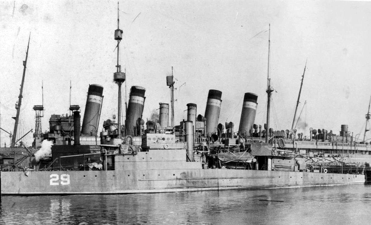 185k | PE-29 at the Boston Navy Yard, Massachusetts, circa late 1920. The four large funnels behind her belong to USAT Mount Vernon Photographed by H. J. Darley, Charlestown, Massachusetts Naval History and Heritage Command photo NH 96683 |