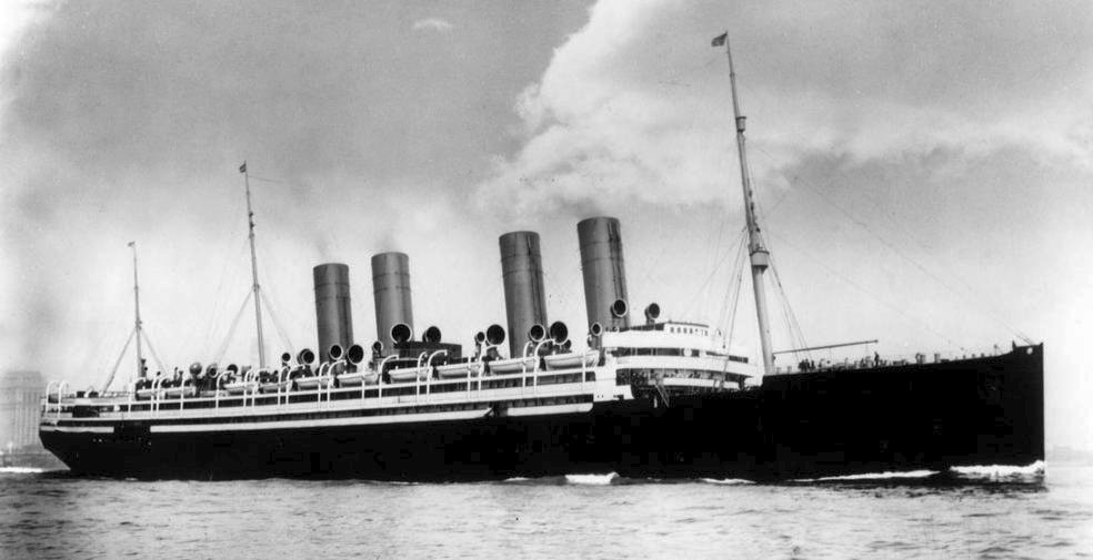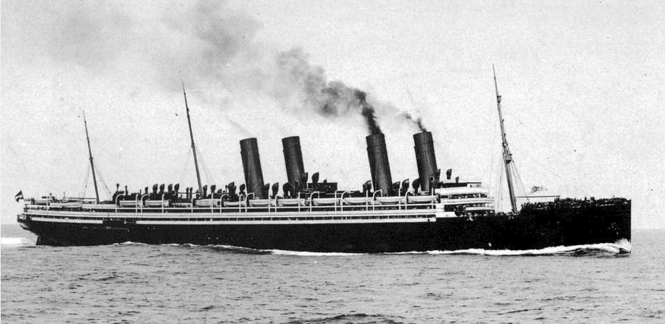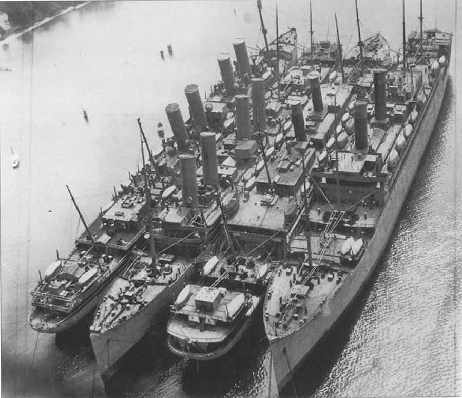 66k | SS Kronprinzessin Cecilie at Bar Harbor, Maine with black funnel tops at the start of World War I, in order to disguise the ship as the RMS Olympic | Robert Hurst | |