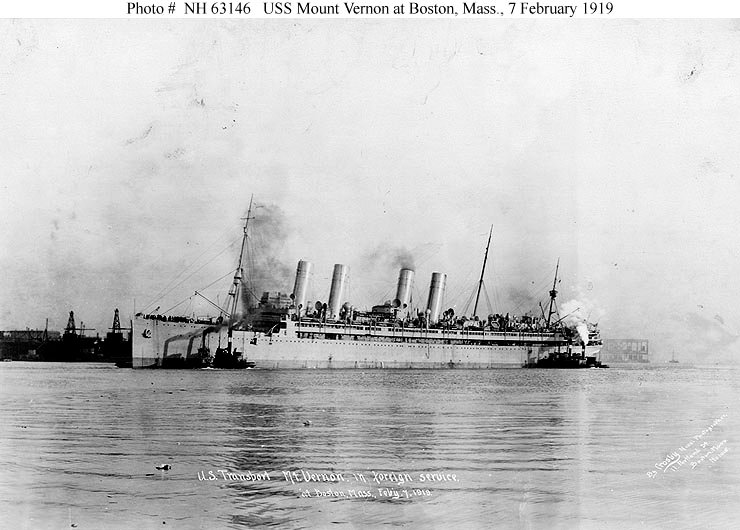 78k | At Boston, Massachusetts, 7 February 1919 Photographed by Crosby, 11 Portland St., Boston U.S. Navy photo NH 63146 |