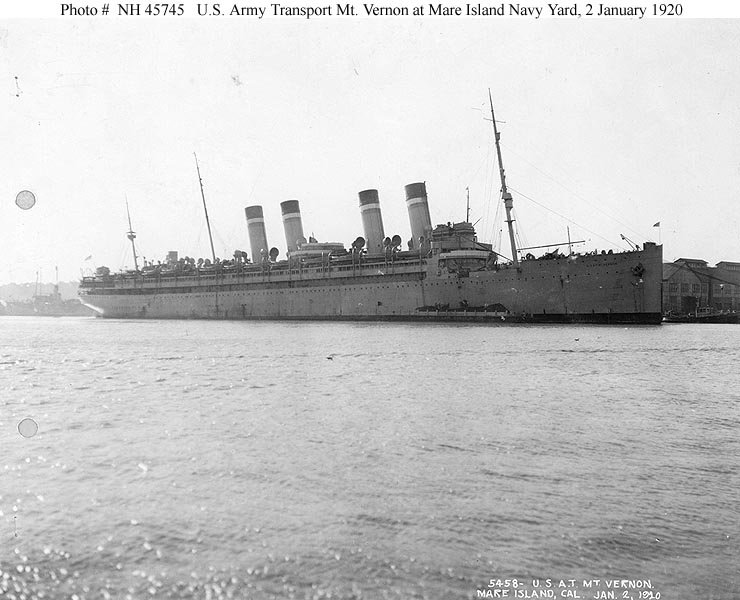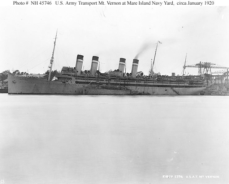 80k | Mount Vernon at the Mare Island Navy Yard, California, 2 January 1920 U.S. Navy photo NH 45745 |