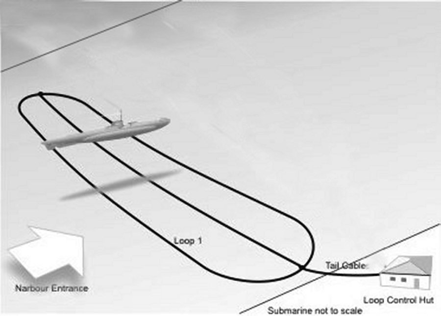 An anti-submarine indicator loop was a submerged cable laid on the sea bed and used to detect the passage of enemy submarines. Developed by the Royal Navy during World War I, they were extensively used by the Allies during World War II to protect harbors against submarine attack. They worked as induction loops – the submarine's magnetism induced a current in the cable as the submarine passed across it. The technology was first developed and trialed at the British Admiralty's Board of Investigation and Research at Harwich on the Essex coast in England. The first operational use was at the Grand Fleet's anchorage at Scapa Flow. The German submarine UB-116 was detected by hydrophones at 21:21 on 28 October 1918 attempting to enter the flow via Hoxa Sound. Two hours later (at 23:32) current was detected in an indicator loop laid in a remotely controlled minefield, induced by the submarine as it passed over the cables. Mines around the loop were detonated by remote control, sinking the submarine. It was the last U-boat destroyed by enemy action before the Armistice. After the war, indicator loop devices were further developed by the Admiralty's research divisions at HMS Vernon and HMS Osprey (Portland Naval Base). In WWII indicator loops were used by the Allies for harbor defense in the UK and its dominions and protectorates, as well as by the U.S. Navy |