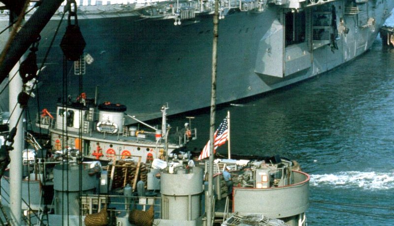 95k | Itara (YTM-391) assisting USS Guadalcanal (LPH-7) into/out of her berth at NOB Norfolk, VA., 10 August 1964. (Cropped 140975802) | ©Richard Leonhardt | |