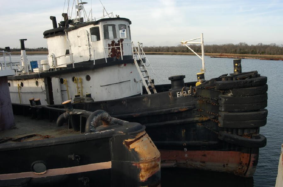 123k | Ex-Itara (YTM-391) in commercial service as the tug Eagle moored, date and location unknown. Photo by Franz Von Riedel, courtesy US Navy Harbor Tug Boats web site. |