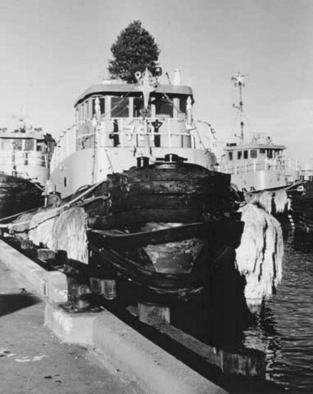 167k | Marinette (YTB-791) tied up at Norfolk, Virginia, circa December 1972. The large harbor tugs behind Marinette are from (from left), Paducah (YTB-758) and Menominee (YTB-790) are decorated for Christmas. Photo contributed by Craig Rothhammer to the National Association of Fleet Tug Sailors. | Robert Hurst | |