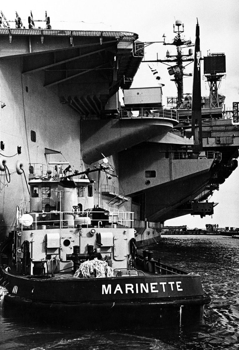 212k | Marinette (YTB-791) assisting John F. Kennedy (CVA-67) to dock at NOB Norfolk, 03 March 1969. National Archives photo USN 1137619 |