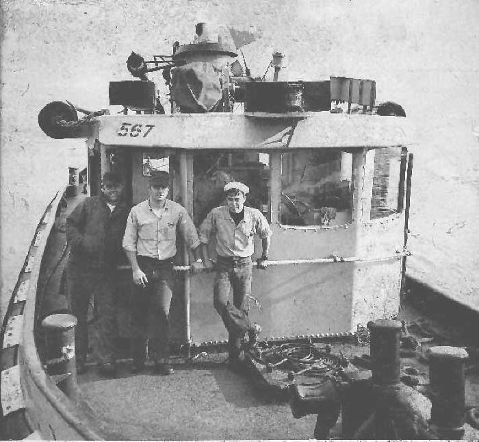 93k | YTL-567 moored at San Francisco Naval Shipyard Hunters Point, circa 1970, with crew standing on the deck. US Navy photo. Courtesy Glenn Caroll YTL-567 |