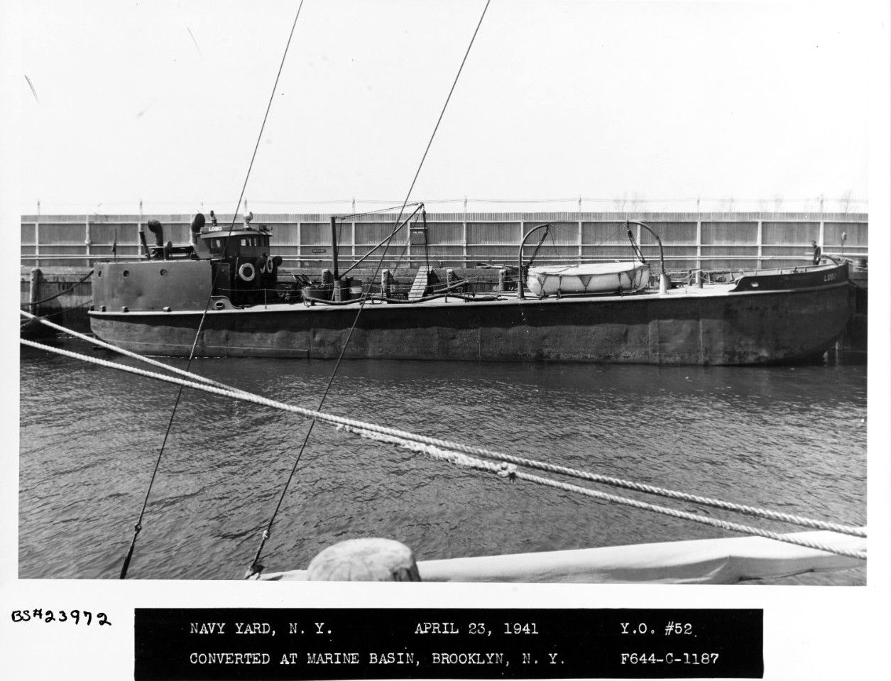 YO-52 160k YO-52 moored at New York, probably at Brooklyn's Marine Basin prior to undergoing conversion for naval service, 23 April 1941.