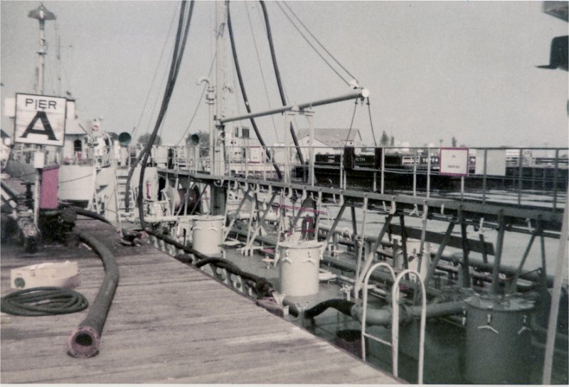 80k | YO-69 looking aft, Pier Alpha, Naval Fuel Annex, Craney Island, VA, March 1954. | Stan Svec, YO-69 | |