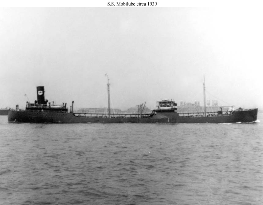 SS Mobilube underway soon after completion in 1939. Note the Mobil flying horse stack marking. SS Mobilube took a torpedo in her engine room off Australia in January 1943 and was acquired by the US Navy for use as a floating oil storage facility under the Navy designation YON-164. The tanker was restored to full service as a tanker after World War II. Photo courtesy The Steamship Historical Society of America |