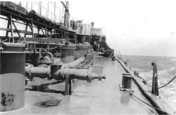 49k | YW-90 underway, view of the forward deck and catwalk. | Gary Andersen for his father James G. Andersen MoMM/2c YW-90 | |