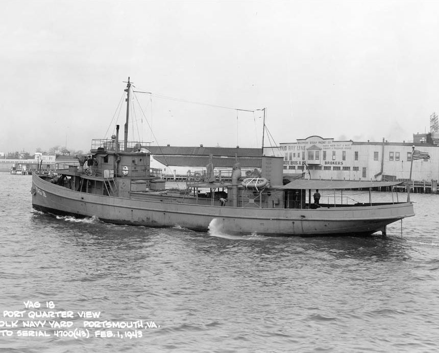 YAG-18 underway off Norfolk, probably on 01 February 1943. Arthur D. Baker III collection. |