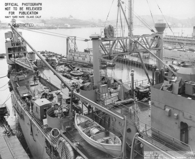 136k | Endicott (YM-12) stern view at Mare Island, 25 October 1944. Navy Yard Mare Island photo # 6418-44 | Darryl Baker | |