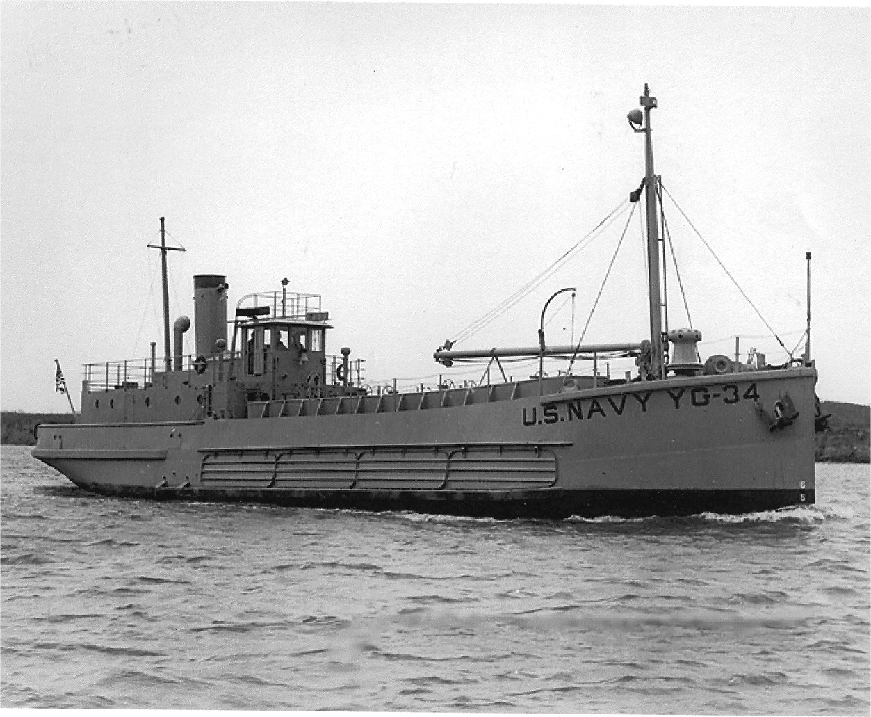 YG-34 underway, probably during acceptance trials in 1944 near Port Arthur, TX. US Navy photo. |